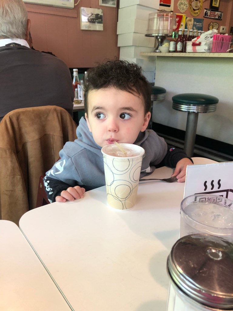 Earlier in the morning we went to a local diner for an early bird breakfast after dropping D’s car off at the shop. Which brings me to our title topic: dining with a two year-old.