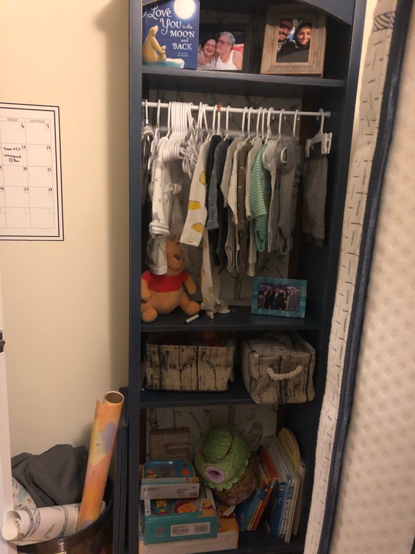 (Don’t mind the old mattress and wrapping papers! This whole room is a work-in-progress right now for baby and we just bought a new bed.)